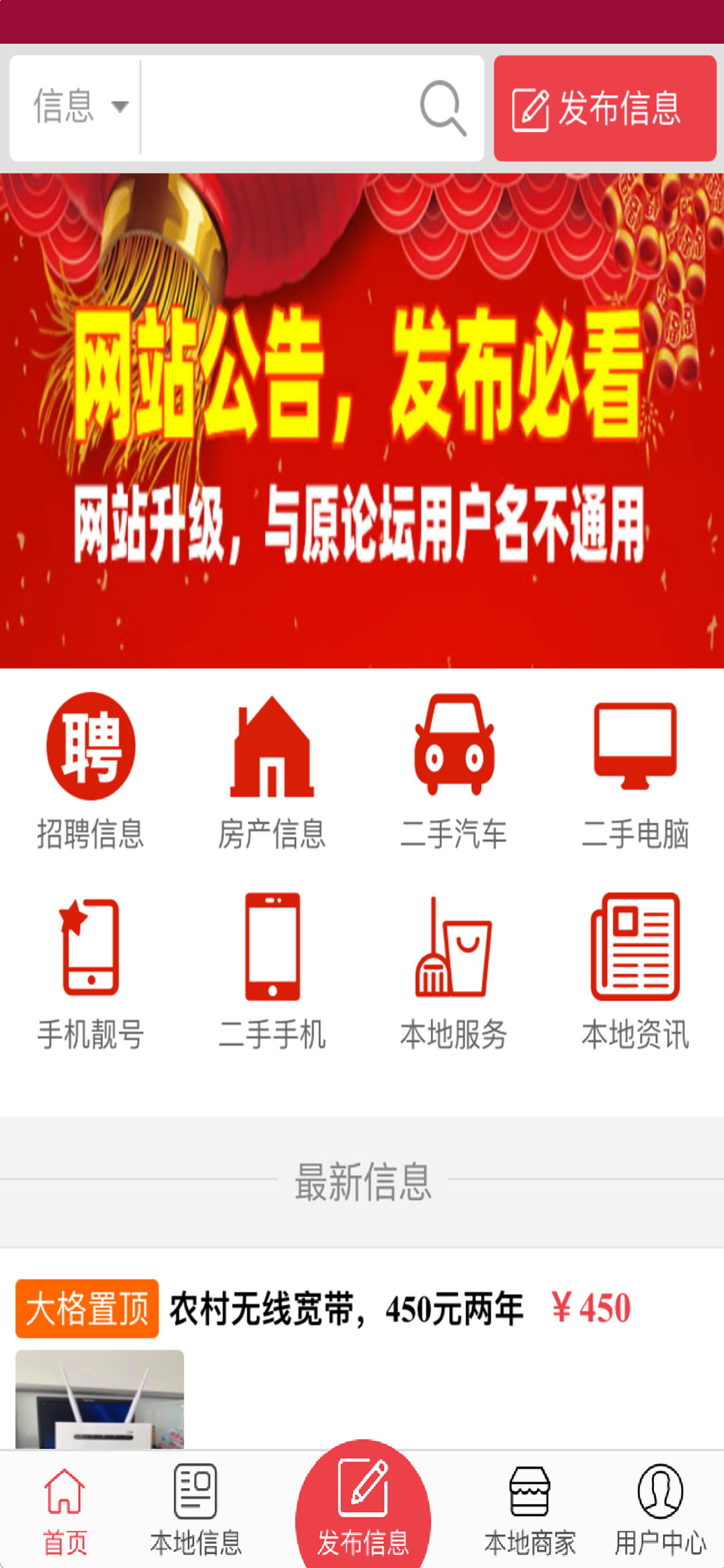 这是最新版本,最新版里没有了论坛,只有发布信息的功能。原论坛用户名与新版APP不通用,请重新注册会员。